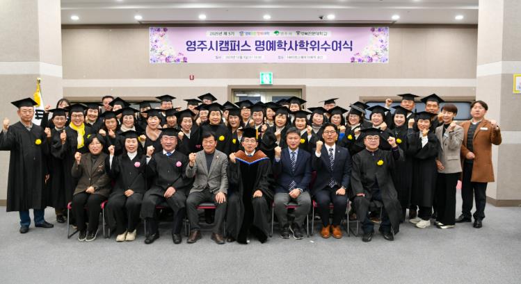 이번 학위수여식은 영주시가 경상북도와 함께 추진하고 경북전문대학교에 위탁 운영한 평생학습 프로그램의 교육과정을 마무리하는 자리로, 졸업생 42명을 포함한 60여 명이 참석한 가운데 진행됐다.