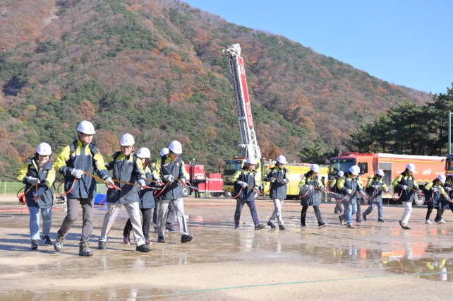 [메이저뉴스]경상남도 소방본부는 가을철 건조한 날씨로 인한 대형산불 발생에 대비해 11월 28일 경남소방교육훈련장에서 산불 대응 소방전술 시연회를 개최했다.