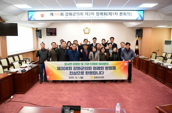 한승희 강화군의회 의장은 “지역 발전의 최일선에서 활동하고 있는 양사면 이장단과 기관·단체장 여러분께서 본희의를 직접 방청해 주신 것은 의회에 큰 힘이 된다”며, “이번 방청이 의회와 지역 간 소통의 폭을 넓히는 계기가 되길 바라고, 군민의 요구를 군정에 충실히 반영할 수 있도록 의회도 더욱 열린 자세로 임하겠다”고 말했다.