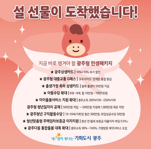 | ▲ 교통비·생활비·양육비까지 덜어 준다. 광주광역시, ‘설 선물’ 민생패키지 총출동 |