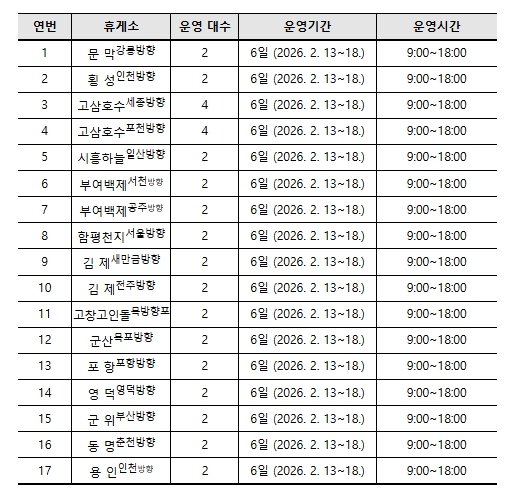 아울러 연휴 기간 중 이용자 불편을 최소화하기 위해 전화상담 창구(☏ 1661-9408) 등 비상연락체계가 운영된다.