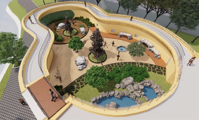 방사장 내부에 흙바닥을 조성하고 수목과 연못(폰드) 등 자연 지형 요소를 배치하여, 일본원숭이들이 흙을 파면서 먹이탐색을 하거나 높은 곳을 오르내리는 등 자연스러운 행동을 마음껏 표출할 수 있도록 할 계획이다.