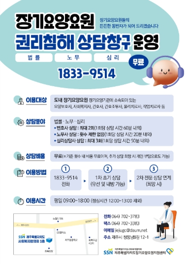 [메이저뉴스] 제주특별자치도가 도 단위 최초로 요양보호사 등 장기요양기관 종사자를 위한 전용 상담전화 ‘시시콜콜’을 개설해 1월부터 운영하고 있다.