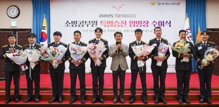 [메이저뉴스] 강원특별자치도는 12월 3일 도청 신관 대회의실에서 도민의 생명과 안전을 지키는 데 헌신한 우수 소방공무원 8명에 대해 특별승진 임용장 수여식을 개최했다고 밝혔다.