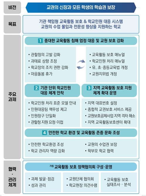 「학교민원 대응 및 교육활동 보호 강화 방안」의 주요 내용은 다음과 같다.