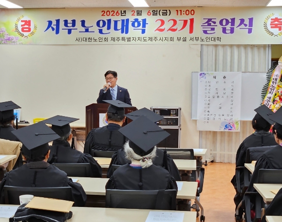 [메이저뉴스]현원돈 제주시 부시장은 2월 6일 제주시 서부노인복지회관에서 열린 제22기 서부노인대학 졸업식에 참석해 어르신들께 존경의 마음을 전했다.