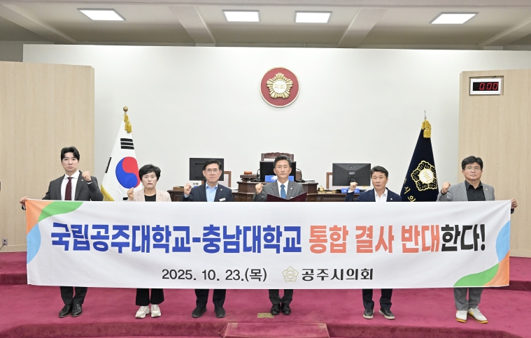 공주시의회는 결의문을 통해 △일방적·졸속적 통합 추진 반대 △교육부 및 양 대학에 공론화 및 의견 수렴 촉구 △국립공주대학교의 독립성과 자율성 보장 등을 결의했다.