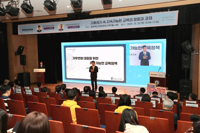[메이저뉴스]충청북도교육청은 23일, 교육문화원 다목적홀에서 기후위기 속 지속가능한 교육의 방향과 과제를 주제로 2025. 충북국제교육포럼을 개최했다.