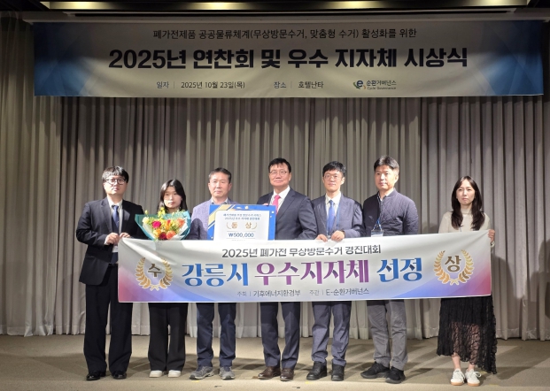 [메이저뉴스] 강릉시는 지난 6월 세계 환경의 날을 맞이하여 자원순환 및 재활용 활성화에 기여한 공로로 ‘환경보전 유공 국무총리 단체표창’을 수상하는데 이어, 23일 기후에너지환경부가 주최하는 '2025년 폐가전 무상수거처리 전국 지자체 경진대회'에서 ‘동상’을 수상하여 기후에너지환경부장관 단체표창을 받는 쾌거를 이뤘다.