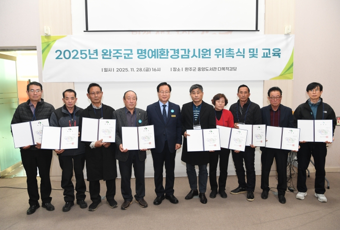 [메이저뉴스]완주군이 늘어나는 환경 민원과 도시화로 인한 오염 예방을 강화하기 위해 28일 ‘명예환경감시원 위촉식 및 교육’을 실시했다.