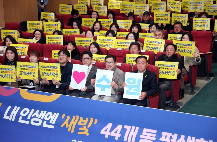 이번 자리는 44개 동 평생학습센터 출범을 알리고, 2026년 수원시 평생학습 정책과 주요 사업을 시민과 공유하기 위해 마련됐으며, 시장과 동 주민자치회장, 시민 등 약 300여 명이 참석했다.