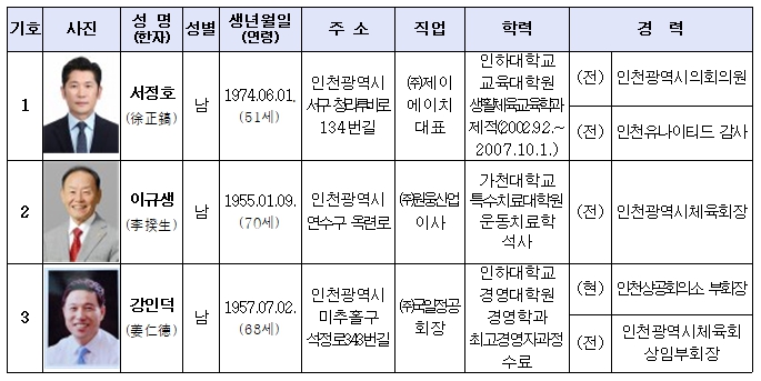| ▲ 인천광역시체육회장재선거 후보자 등록상황 |