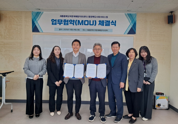 [메이저뉴스]충청북도사회서비스원(원장 이장희)과 세종충북도박문제예방치유센터(센터장 김경진)는 2025년 10월 28일 오전 11시, 세종충북도박문제예방치유센터 회의실에서 도민의 정신건강 증진 및 삶의 질 향상과 사회서비스 협력체계 강화를 위한 업무협약(MOU)을 체결했다.