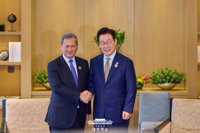 [메이저뉴스]이재명 대통령은 27일 오전 제47차 아세안 정상회의 참석을 계기로 ‘훈 마넷’ 캄보디아 총리와 취임 후 첫 양자회담을 가졌다.