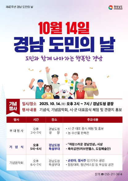 [메이저뉴스]경상남도는 10월 14일 오후 2시부터 7시까지 경남도청 광장 일원에서 ‘제42회 도민의 날’ 행사를 개최한다고 밝혔다.